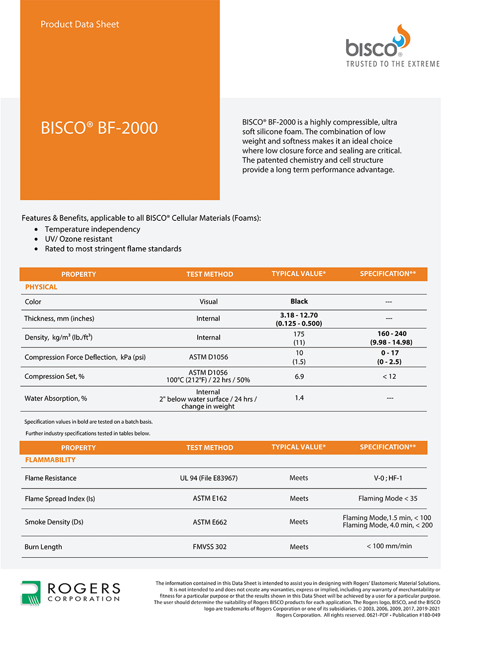 羅杰斯BISCO?  BF-2000 超柔硅脂泡棉