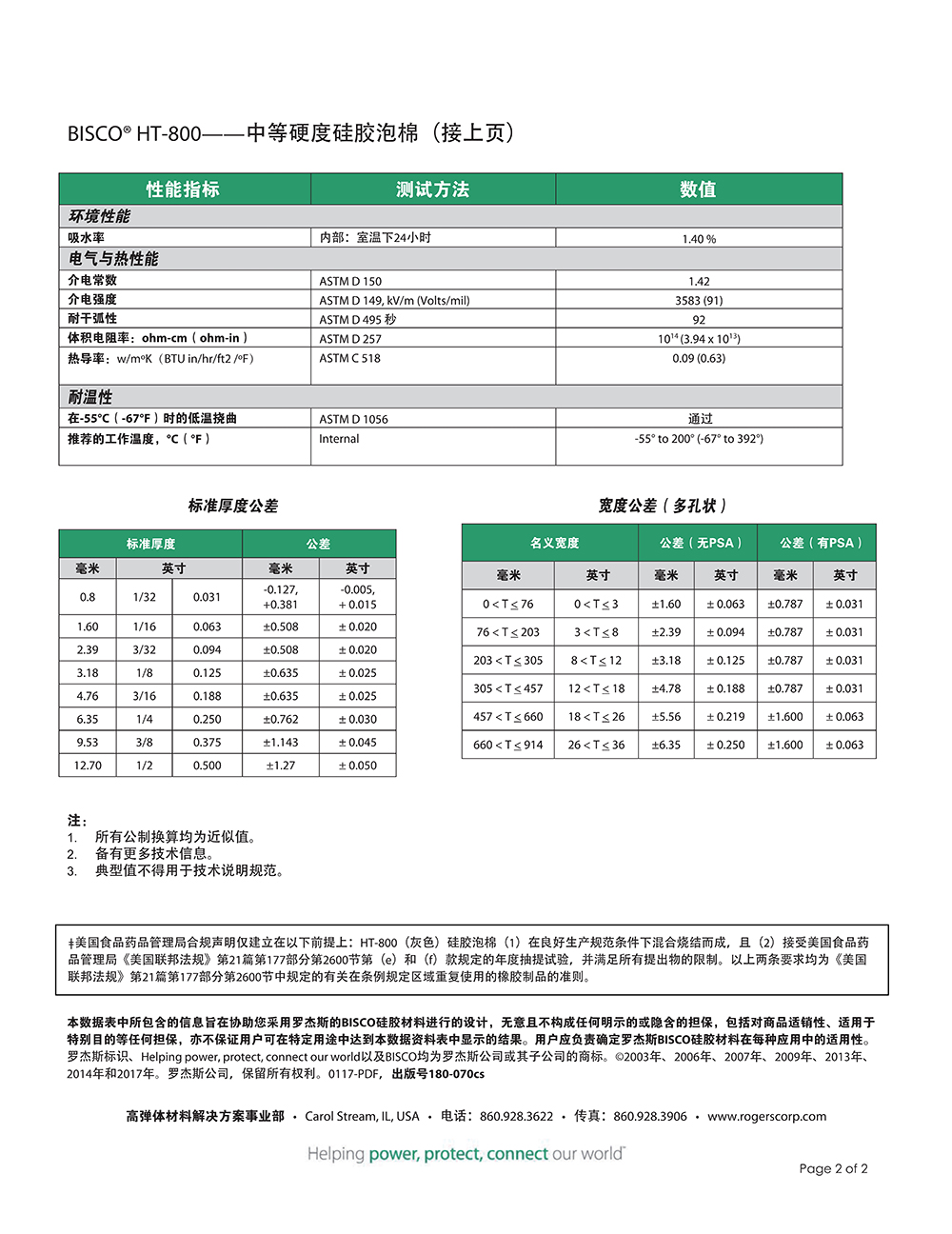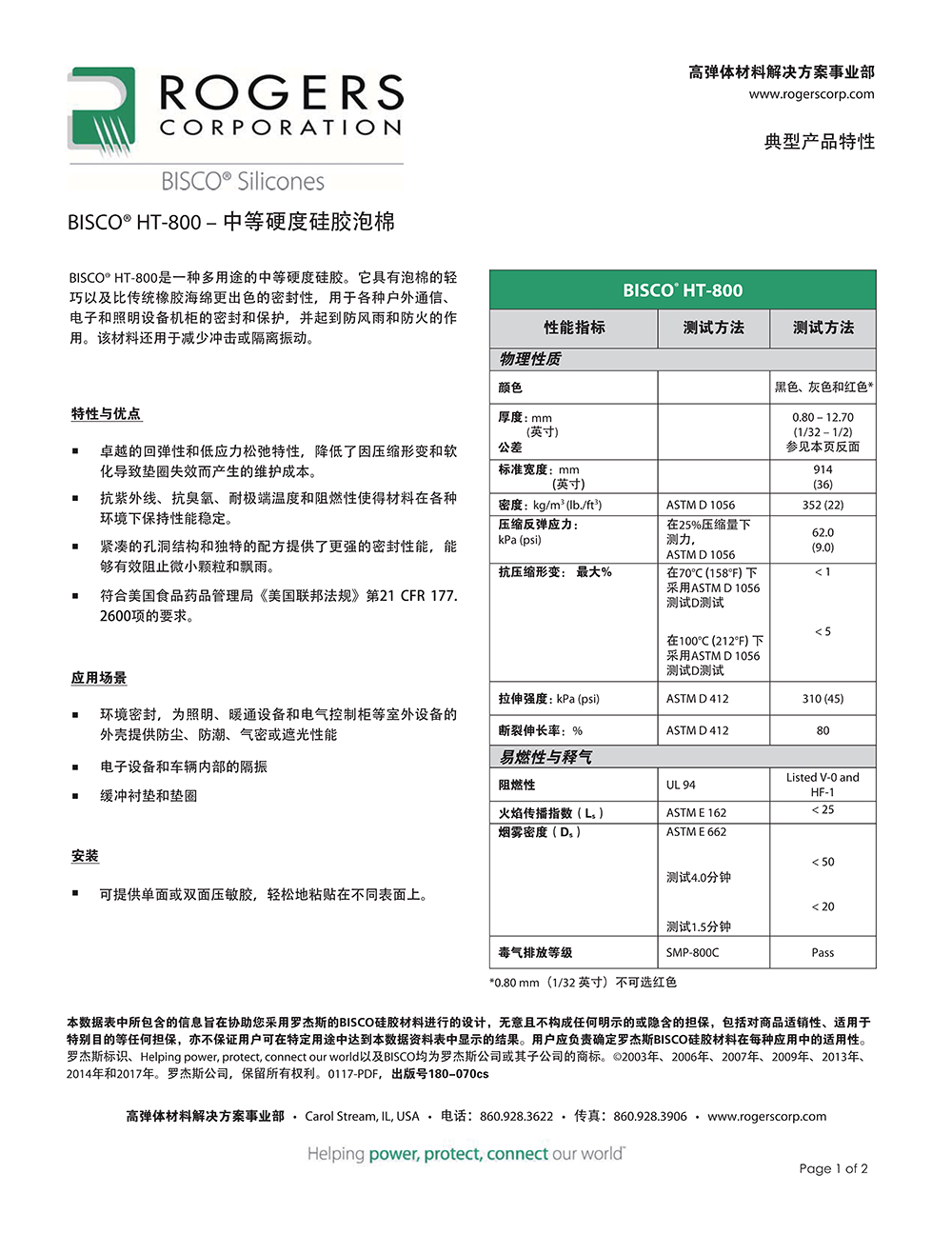羅杰斯BISCO? HT-800 中等硬度硅膠泡棉