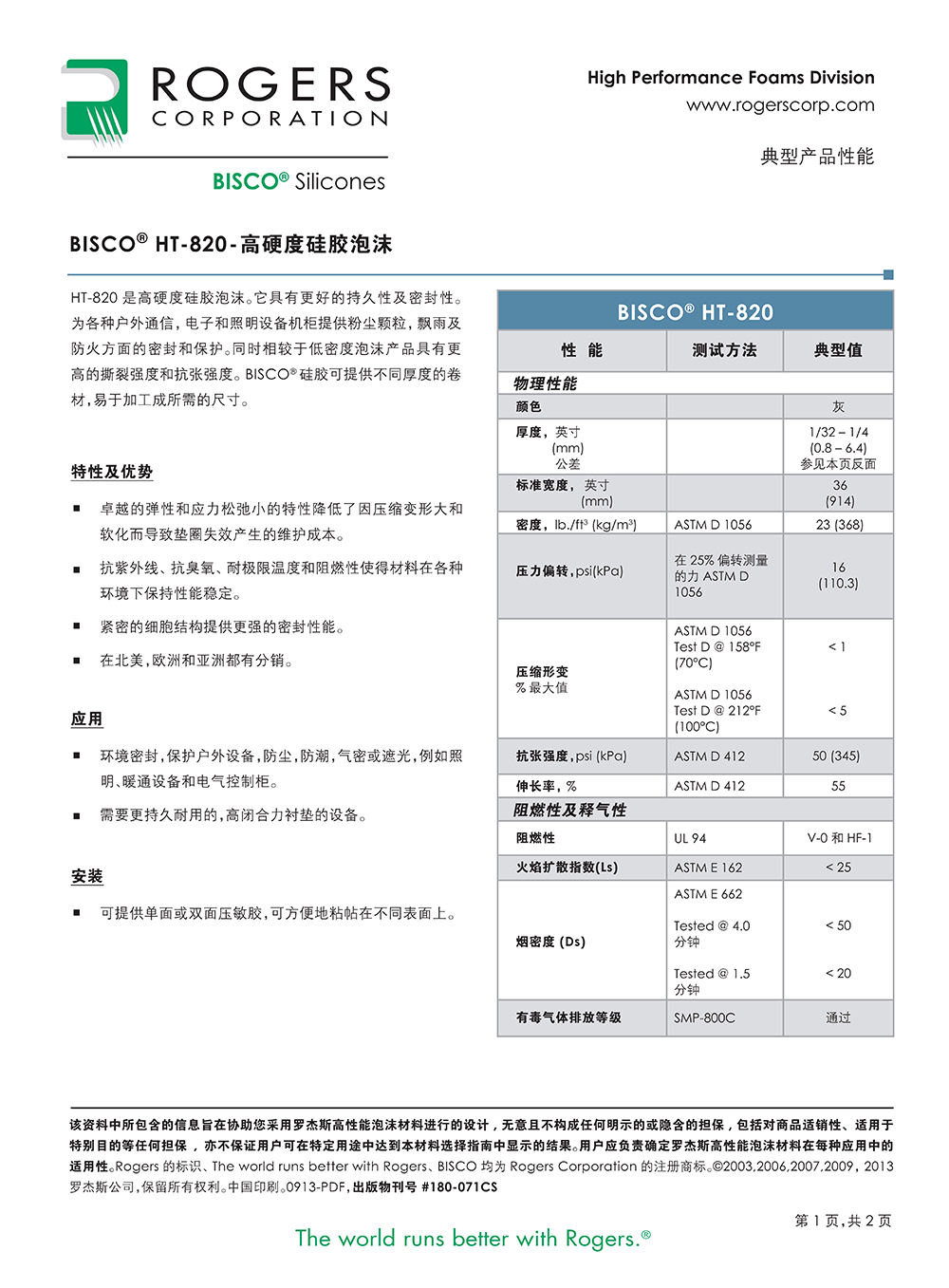 羅杰斯BISCO?  HT-820 硬質硅膠泡棉