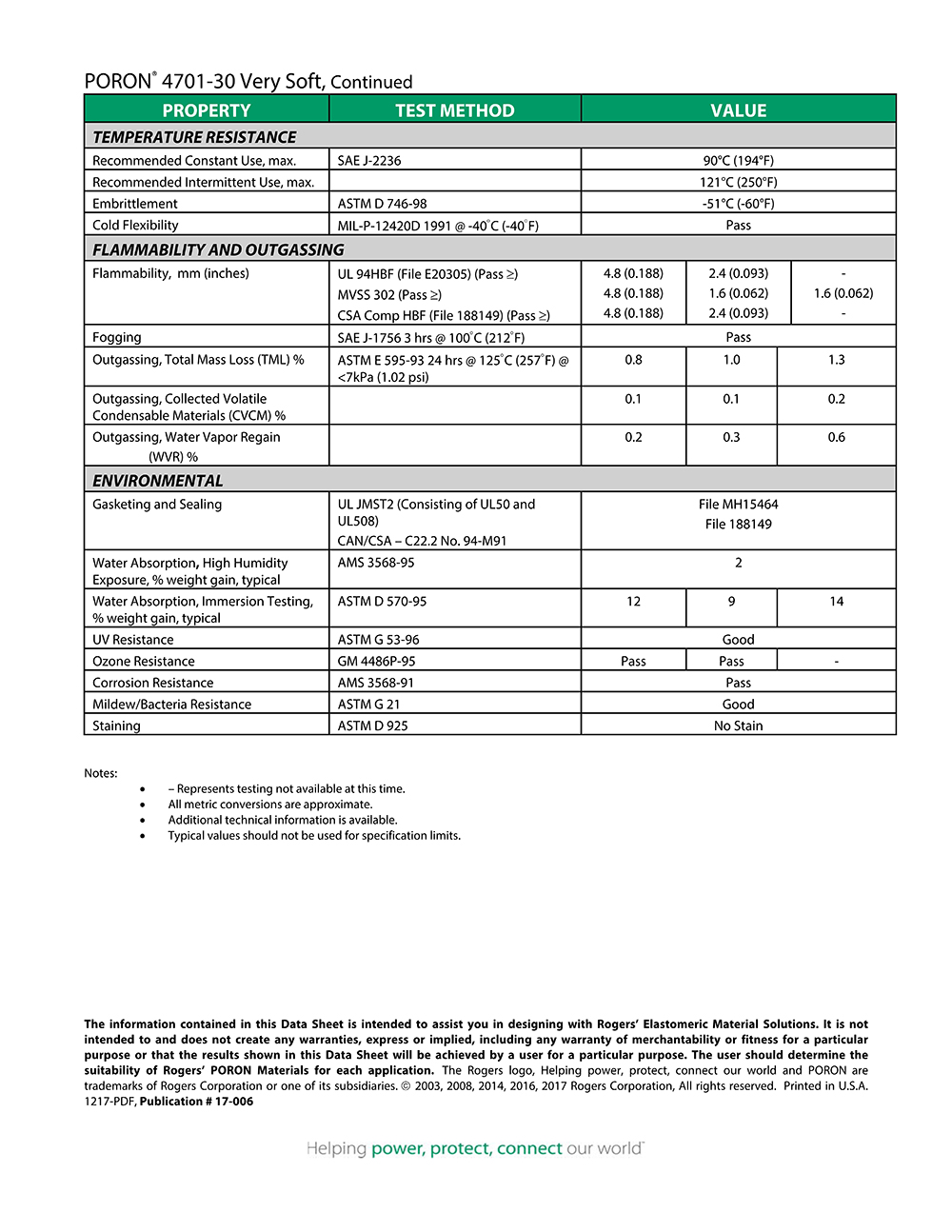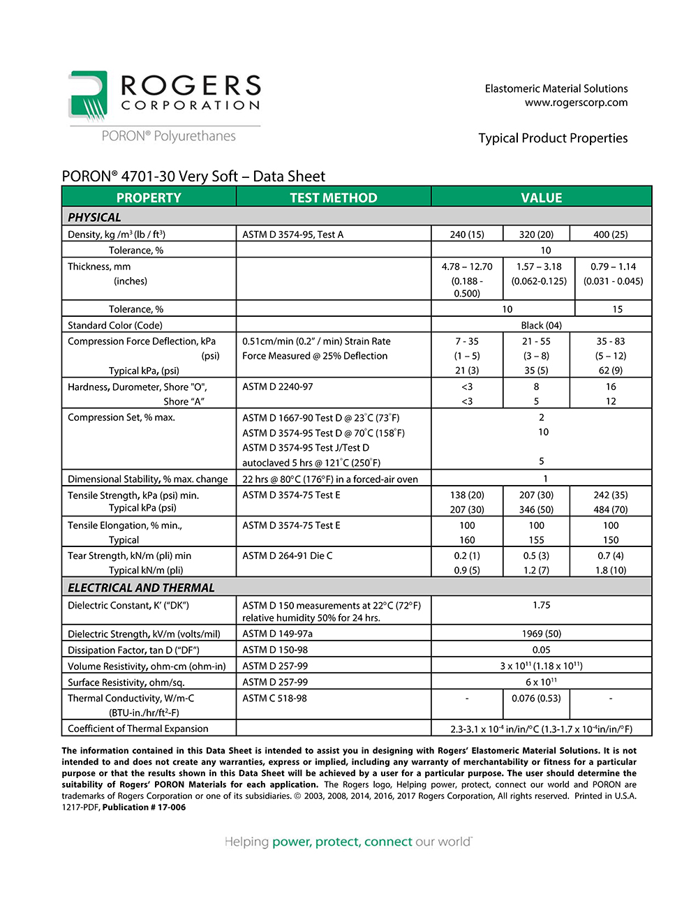 羅杰斯PORON? 4701-30 聚氨酯