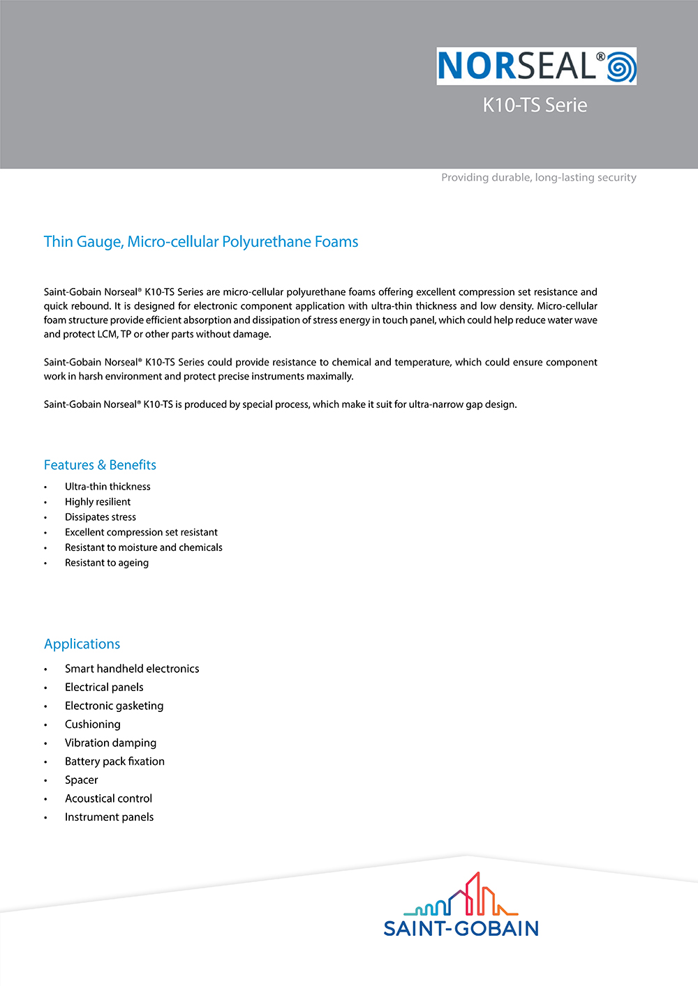 圣戈班Norseal? K10-TS Series – Properties