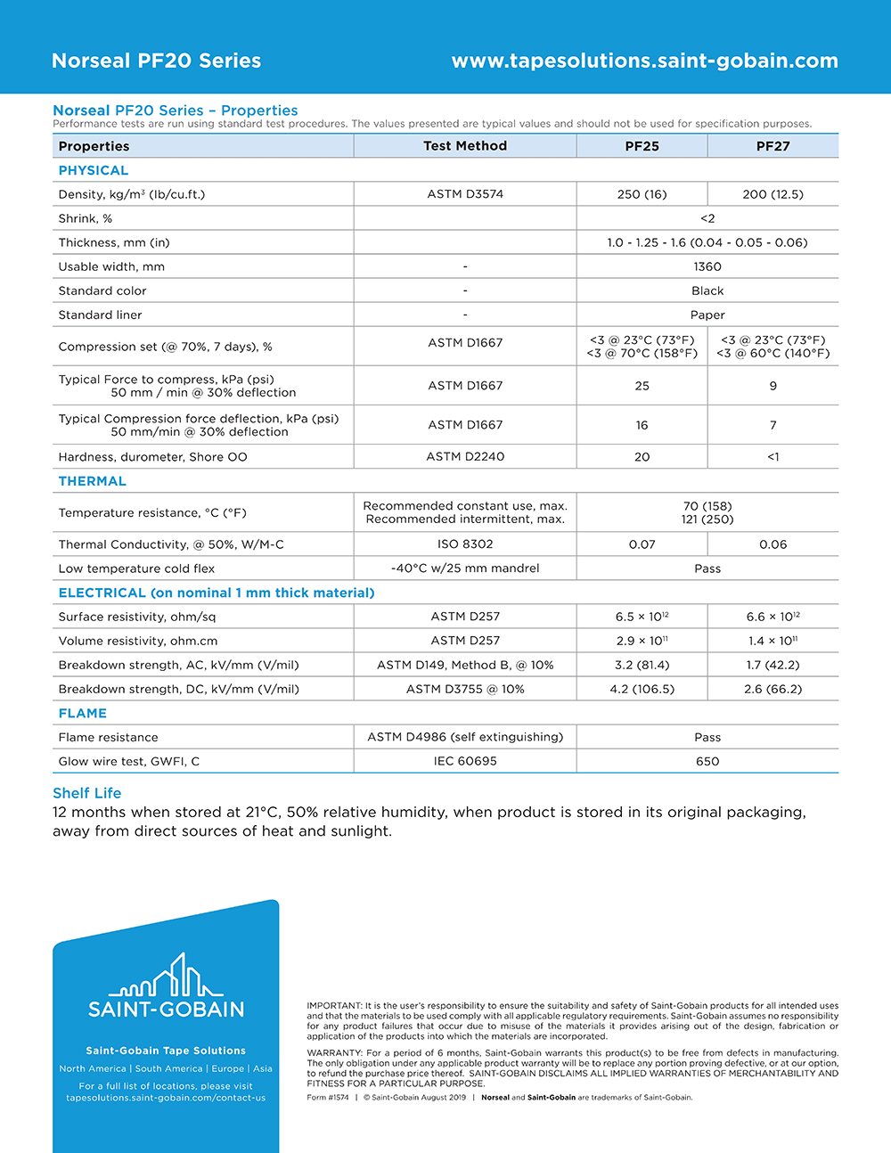 圣戈班Norseal? PF20 Series – Properties
