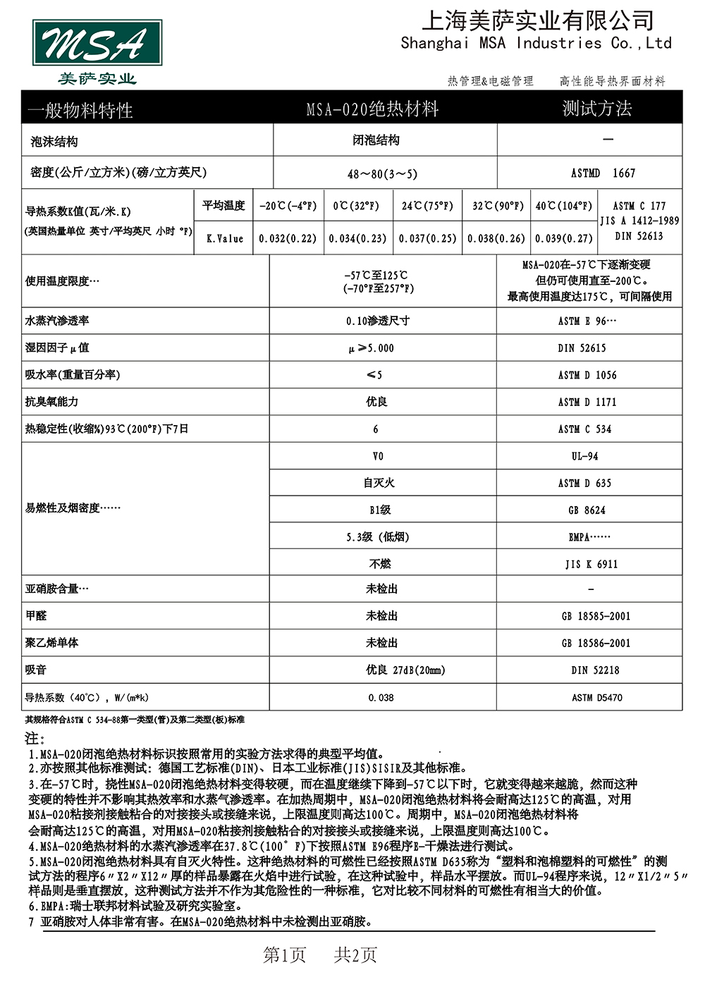MSA-020 EPDM絕熱材料